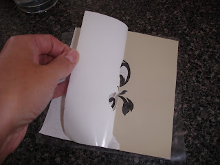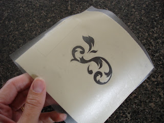 8. Put contact paper, or transfer paper on the RIGHT side of your vinyl. DO NOT SKIP THIS STEP! If you don't do this it will be nearly impossible to transfer it to your project -trust me, I learned the hard way and had to redo my stencil!