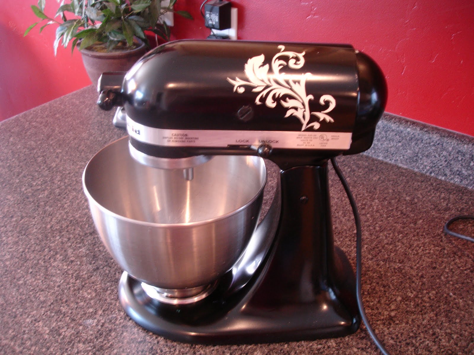 ***Again - learn from my mistakes! If I had been smart, I would have realized that I painted the "tattoo" the same color my KitchenAid was originally, so I should have just put the vinyl on first then painted it black! Would have saved me time and a can of spray paint - oh well - be smarter than me! Trust me, it's not hard to do! :)